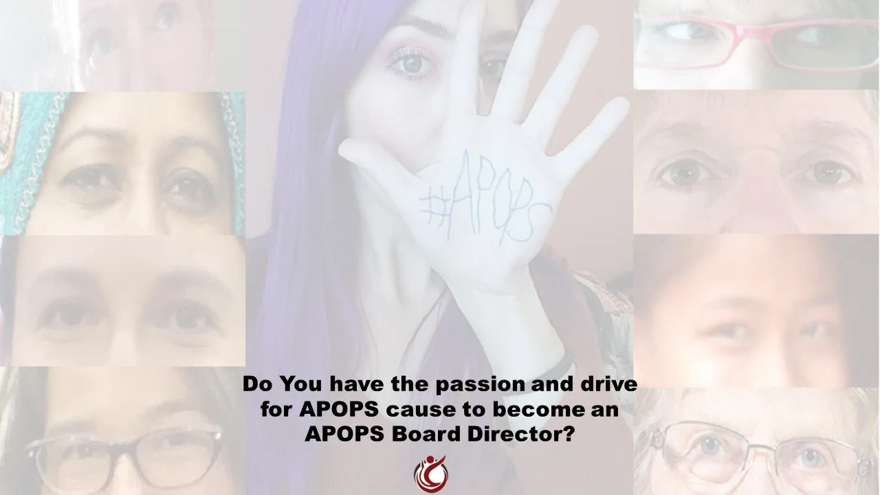 What do APOPS board members do? Board members are visionary directors, steering APOPS toward a sustainable future by analyzing and adopting sound, ethical governance, while developing policies and programs to increase POP awareness and advance POP screening, practice, and policy.